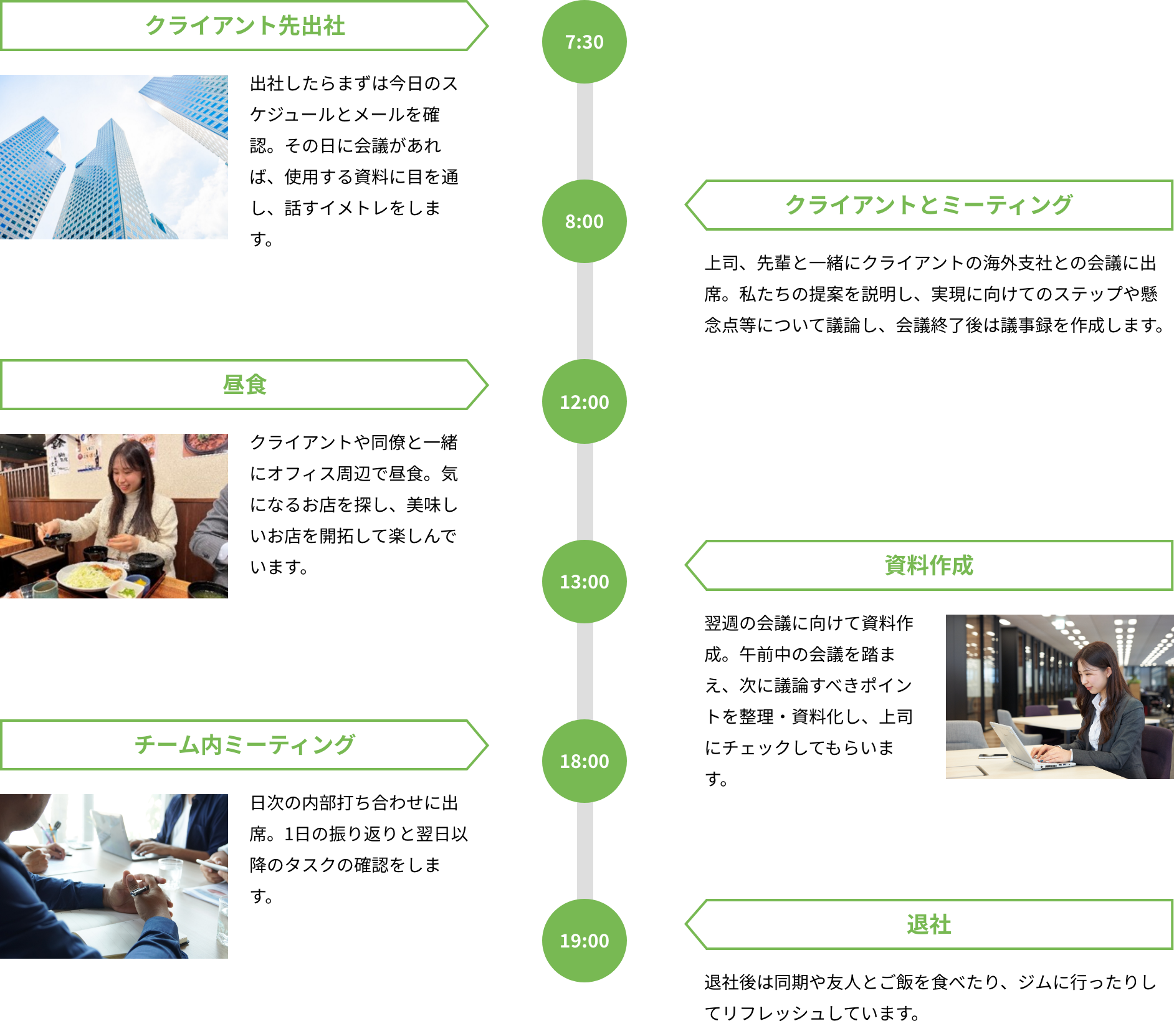 入社後は、研修と並行してプロジェクトに参加。しかし、アウトプットに求められる質は予想以上に厳しく、上司からは「構成に全くストーリーが感じられない」「説明の仕方がおかしい」と、何度も作り直しを命じられました。頭をフル回転させなければ、アウトプット1つ完成させることができない。つらい日々が続き、自分の甘さを思い知らされました。