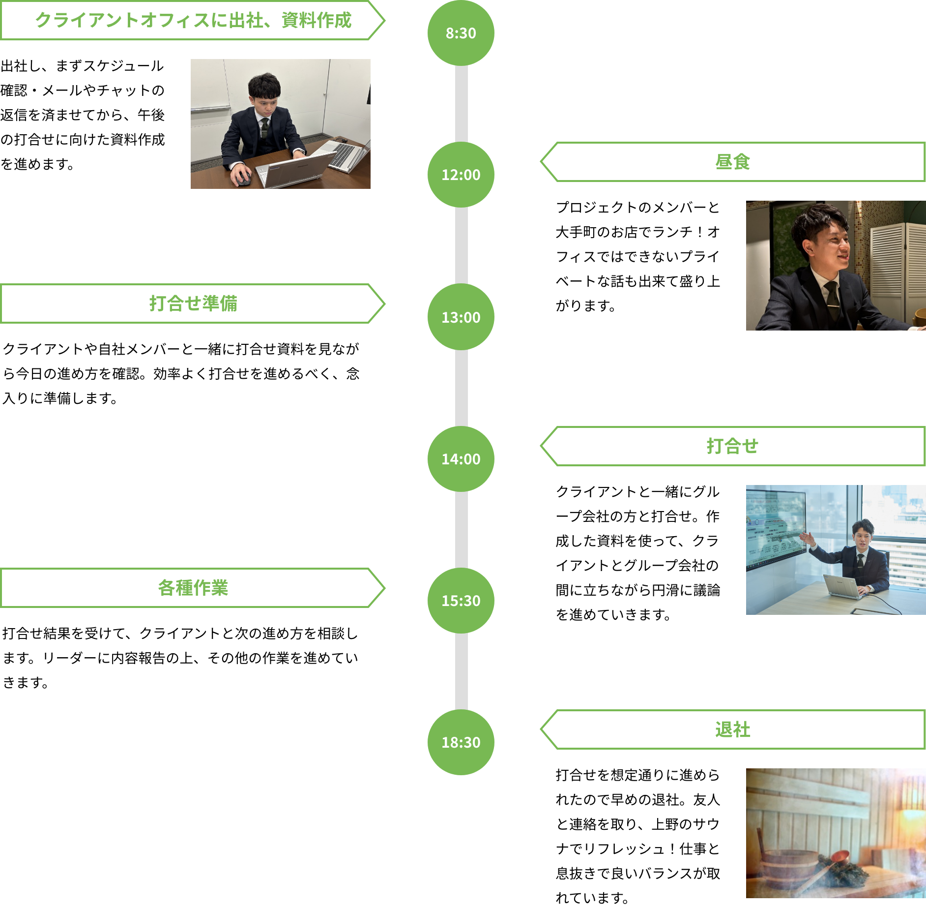 世の中には様々なタイプのコンサルティング会社がありますが、自分のペースで成長できて、かつ人間として尊敬できる先輩が多いことが当社の強みです。