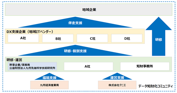 本事業においてクニエは、ISITおよび九州地域のITベンダー各社とともに九州地域の中小企業を対象に、データ活用による知的財産創出を目的とした支援事業を実施しました。