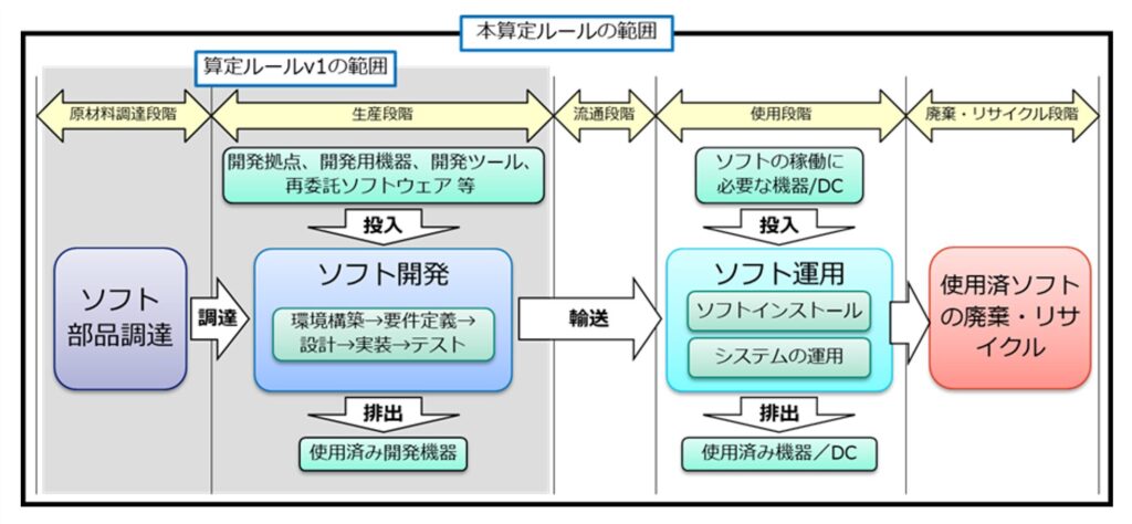 そこでフォーティエンスが参画するソフトウェア分野の脱炭素研究会は、算定ルールの対象範囲をライフサイクル全体に拡大し、公開することとしました。