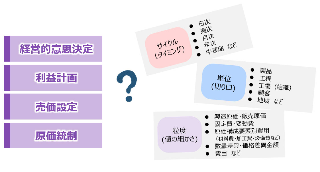 自社にとって、各種意思決定にどのような情報が必要か。原価管理の高度化は、原価情報の要件を明確にすることから始まる。