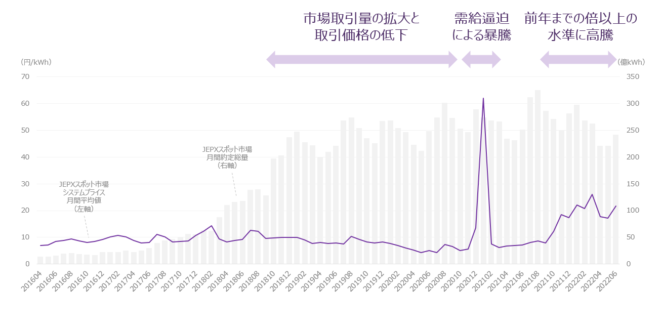- [2]一般社団法人 日本卸電力取引所, “スポット市場取引結果(2016年度~2022年度)”, http://www.jepx.org/market/(参照2022年7月12日)