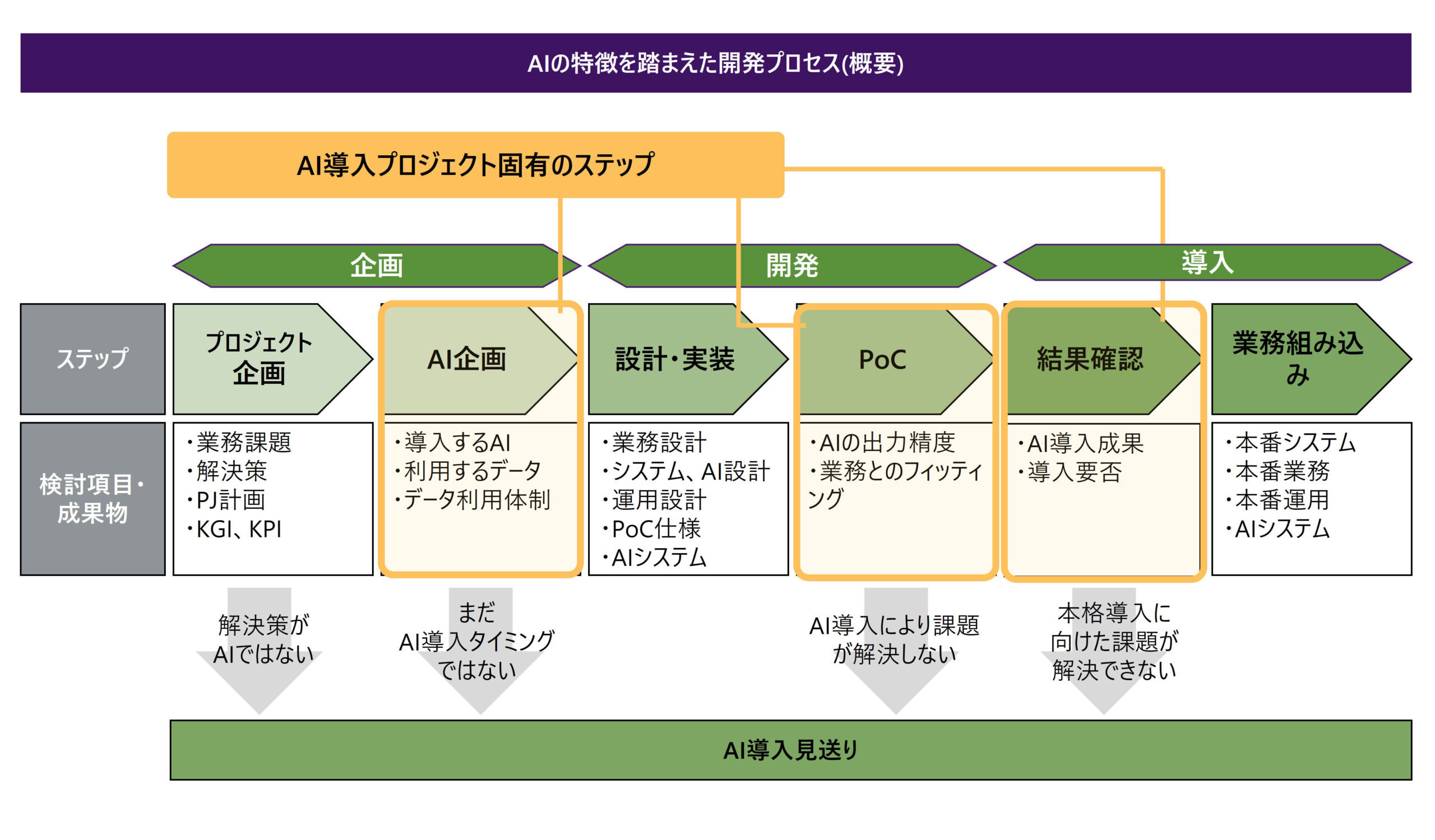2020年公開の本連載「成果を生むAIを導入するためには(前編・後編)」において、AIの導入プロセスは従来のシステム導入と比べ、企画段階での情報収集、運用体制の検討、本格導入前のPoC実施がより重要になることを述べた。