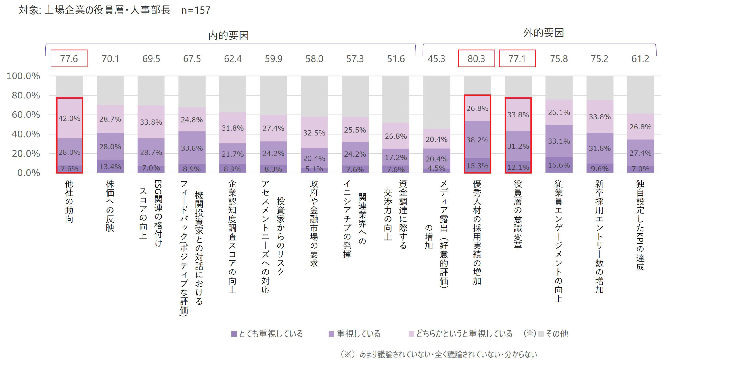 また、同調査結果によると、「人的資本の情報開示」の目的は、IRにとどまらず、採用や意識改革など広範にわたっている。