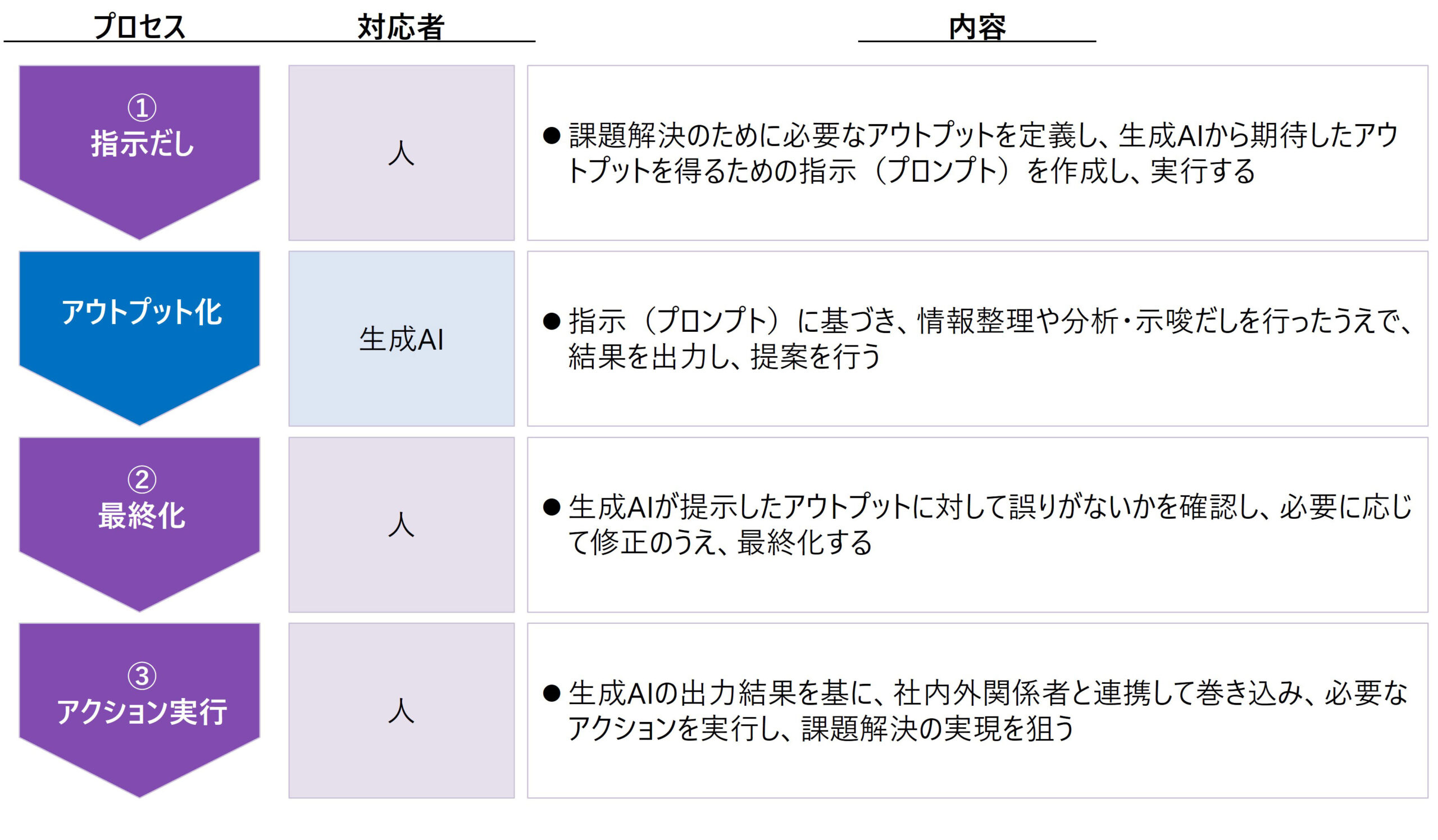 これらを基に、人と生成AIの役割を整理したのが図3だ。