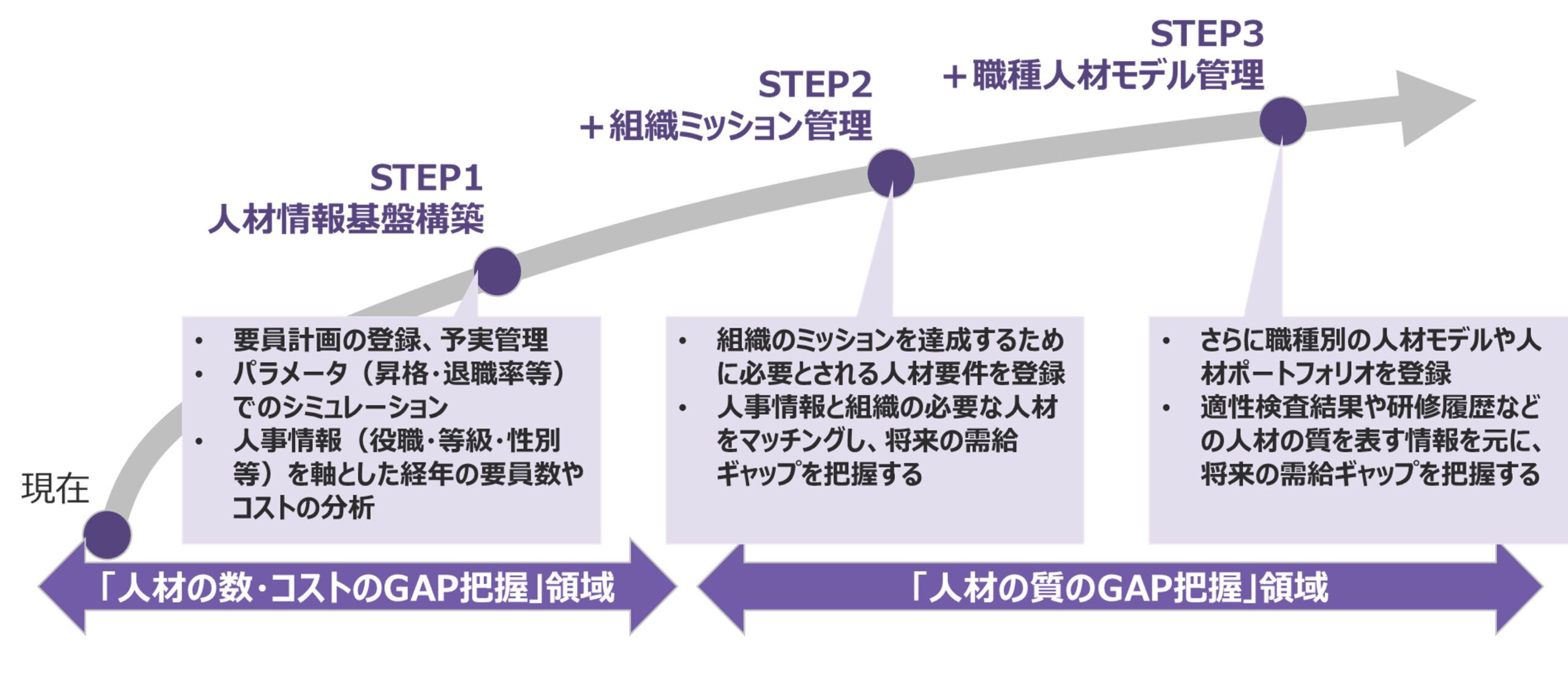 システムさえ整ってしまえば、次のSTEP2組織のミッション達成に必要な人材観点での要員計画や、STEP3の人材の経験やスキル、適性等に踏み込んだ要員計画に発展させるのは難しくない。
