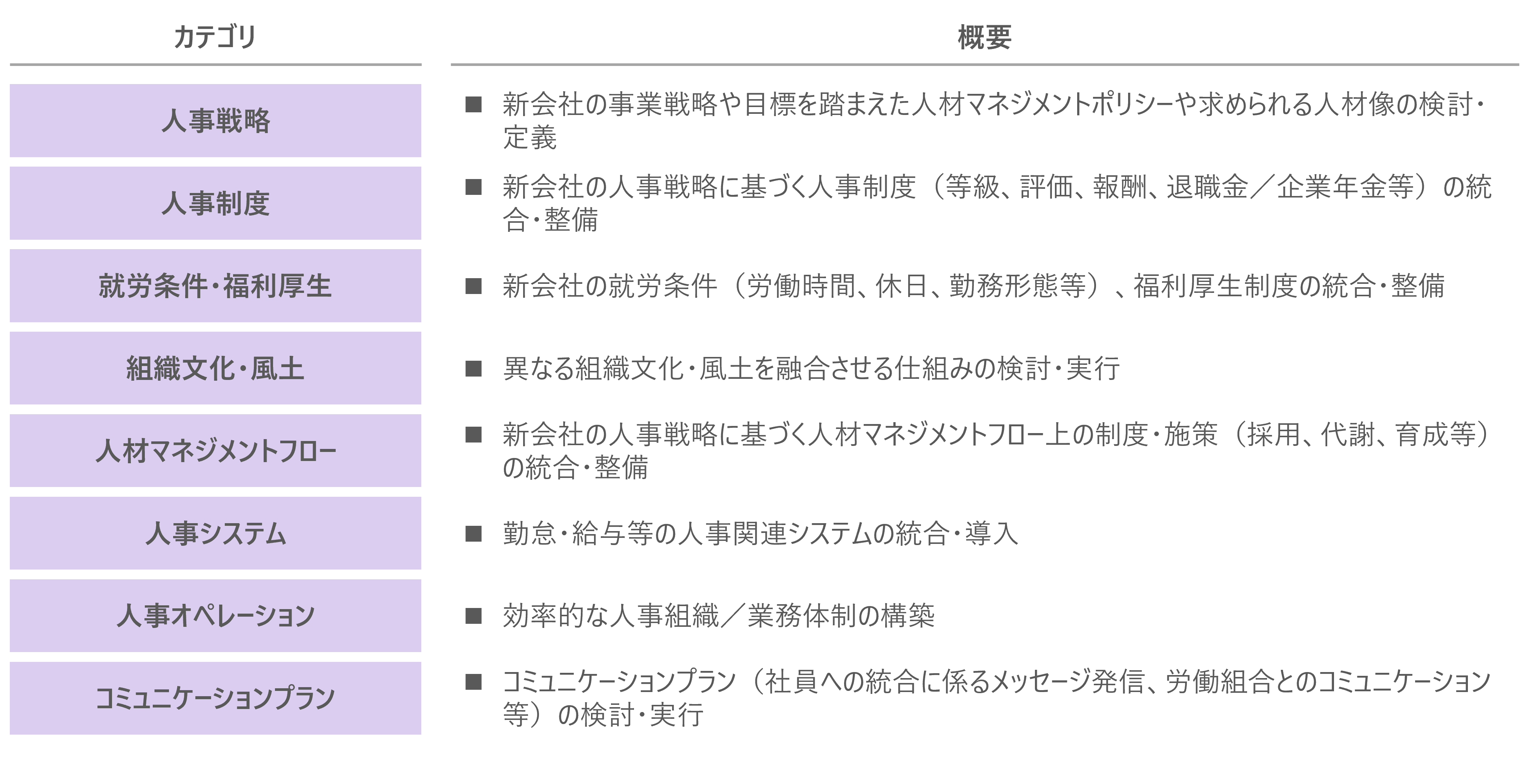 本稿では、まずM&A実行時に人事がすべき人事PMIの全体像を示し、その上で人事PMIの中の「人事制度の統合」について解説する。
