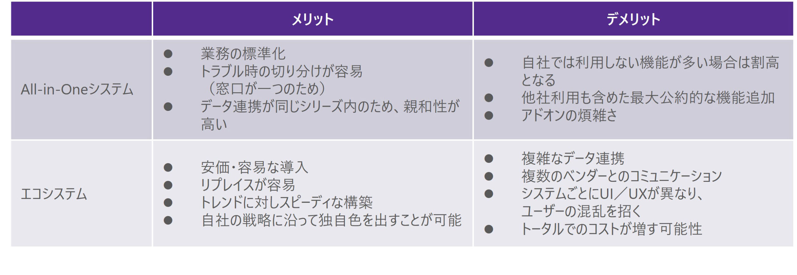 一方、エコシステムでの構築・運用についてパッケージなどの「All-in-One」形態に比べた際のデメリットも当然存在する。