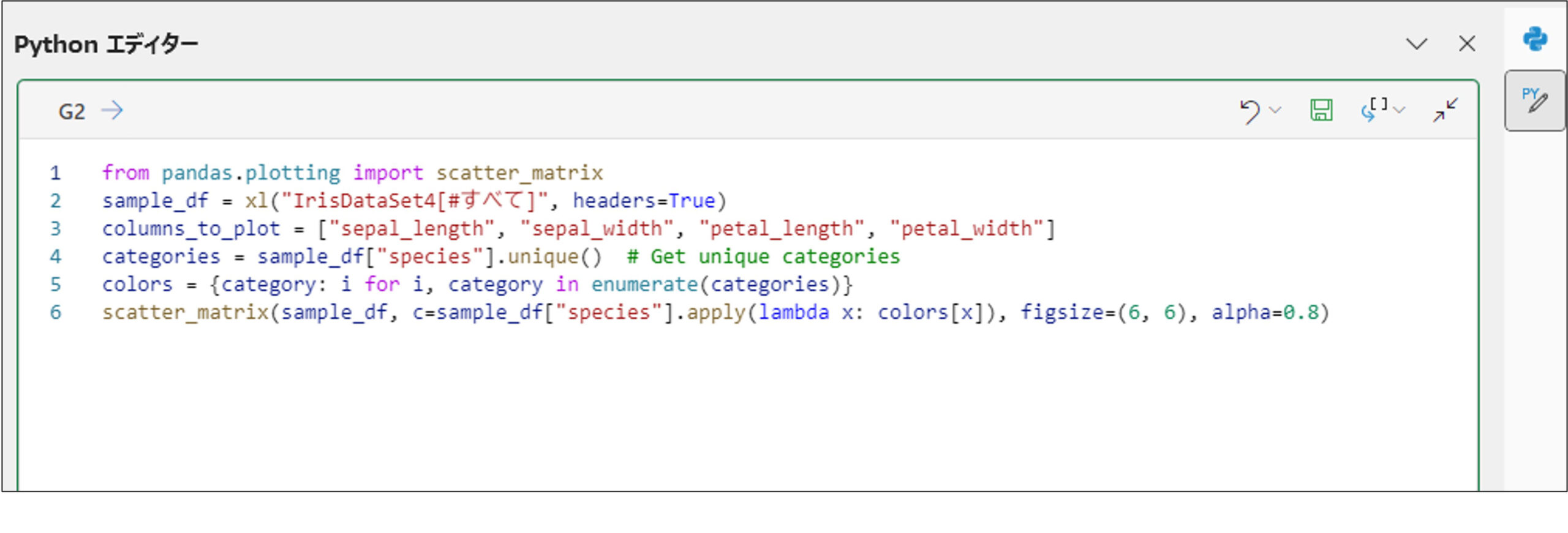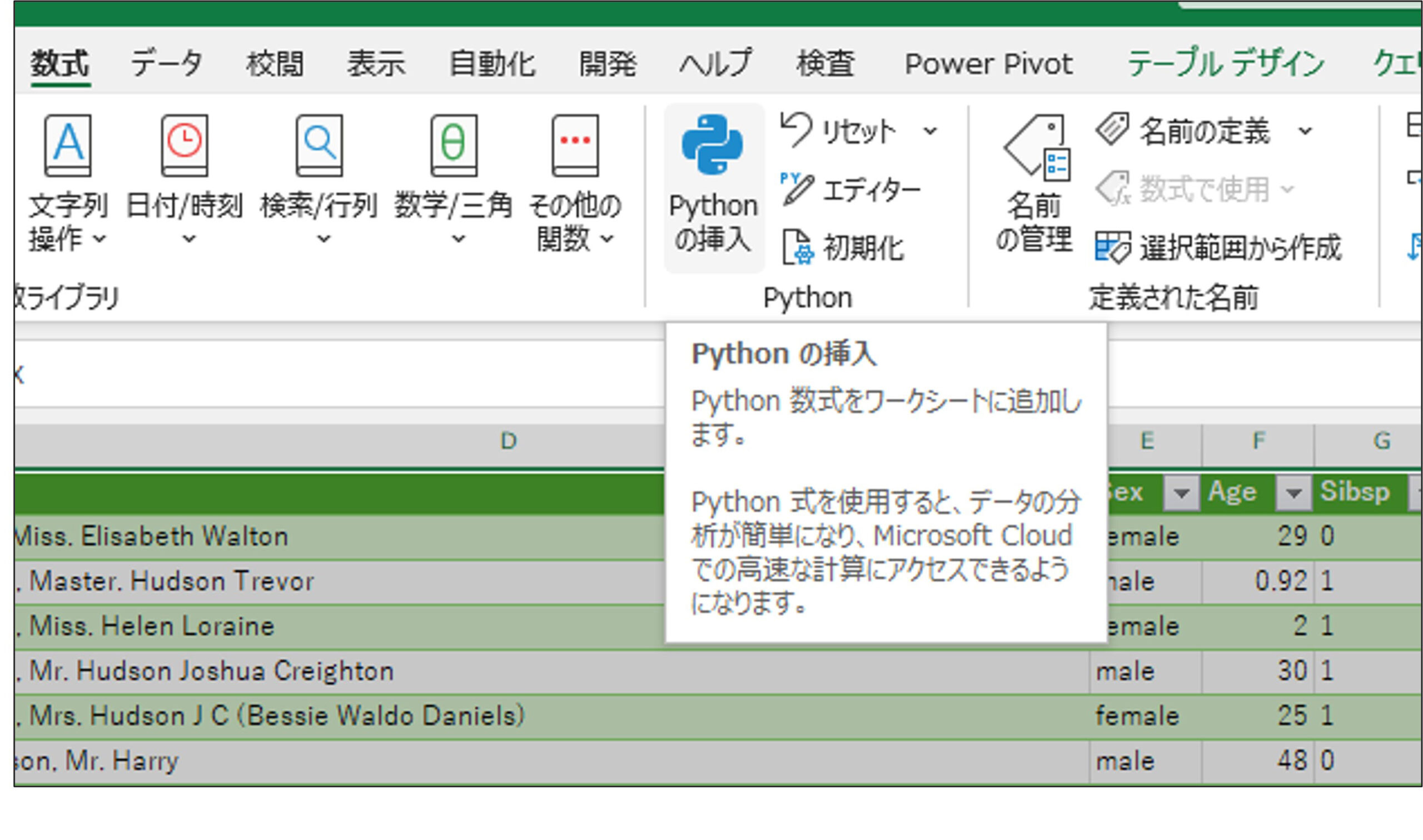 繰り返しになるが、Python in Excelの利点は環境構築が不要なことに尽きる。さらには代表的なライブラリはあらかじめインポートされているため、宣言(import)なしで用いることができる。例えば後述する図6では、pandasをインポートするコードを書くことなく、即座にデータフレームに読み込んでいることが見て取れる。