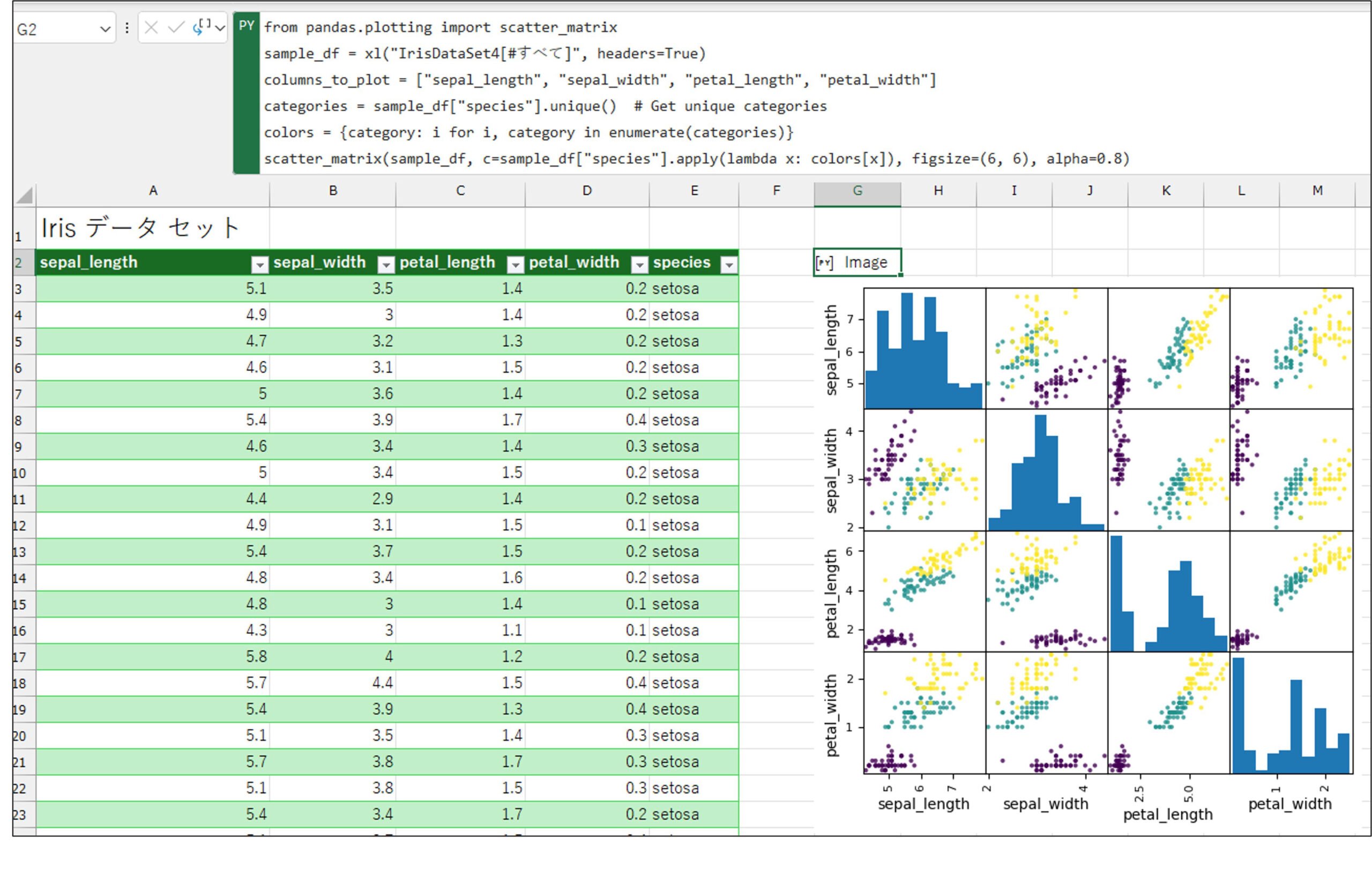 - (サンプル画像はExcelに標準搭載のIrisデータセットによるペアプロットの例を基に著者作成)