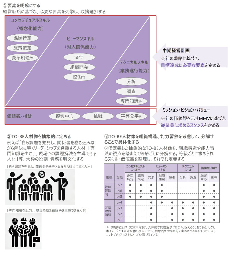 求める人材像を経営戦略に紐づけ、従業員にも伝わるように明文化することが求められる。