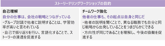 ストーリーテリングワークショップを定期的に開催し、従業員が経営戦略と自分の役割を関連づけて説明できる場を設ける。