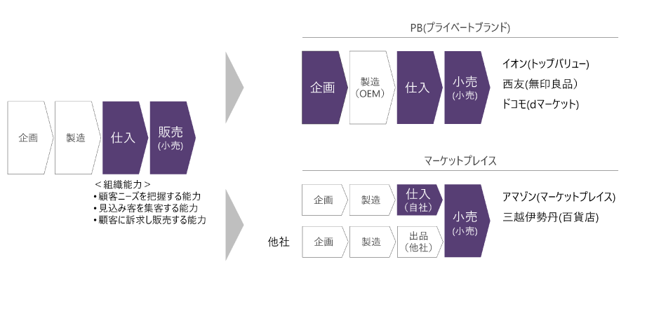 次に、店舗アセットを活用した事業展開の可能性について考察する。店舗は単なる販売チャネルにとどまらず、「顧客ニーズの把握力」「見込み顧客の集客力」「顧客への訴求・販売力」といった、極めて実践的な組織能力を有する経営資源である。これらの能力を活かすことで、自社のプライベートブランド戦略を軸にした新たな事業モデルの構築が可能となる。
