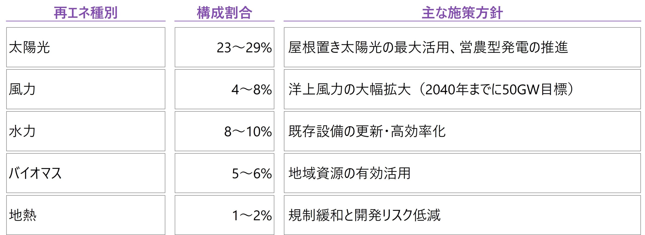 - 再エネ比率の引き上げ:2040年度に電源構成の40〜50%を再エネに