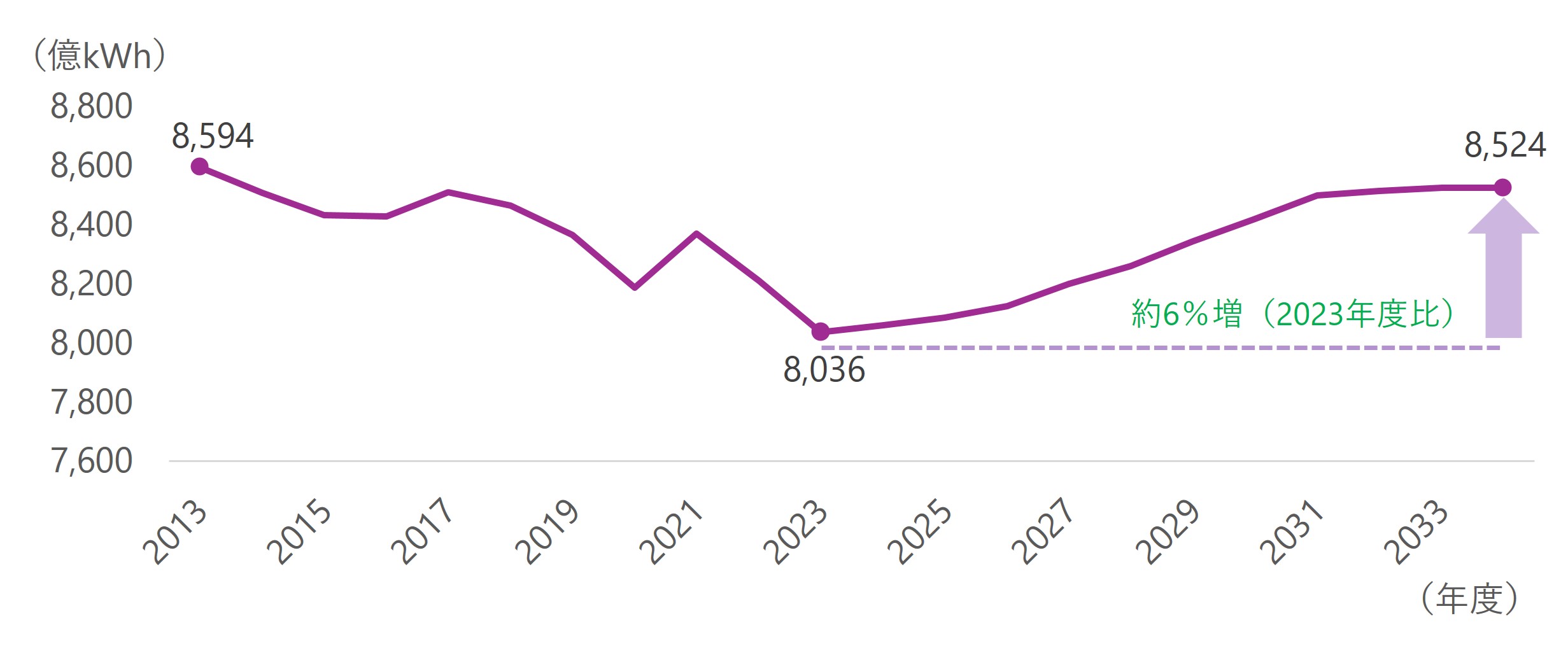 - 現時点でのデータセンター・半導体工場の申し込み状況をもとに想定した結果、2031年度を境に伸びが減少しているが、将来の新増設申し込みの動向により変わる可能性がある。