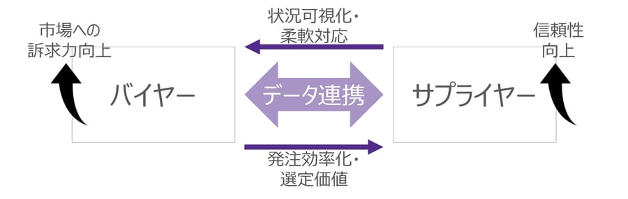 今回はデータ連携の主要な対象となるサプライヤーとの協働を深めるユースケースを紹介する。近年、環境や人権配慮、地政学リスクへの備えなどに加え、顧客ニーズ多様化に伴うカスタマイゼーションやパーソナライゼーションが求められており、納期や品質を確実に守るためにはサプライヤーとの関係をデータでつなぐことが不可欠だ。これは、電子データ交換(EDI)のような調達の効率化にとどまらず、企業の競争力や持続可能性、サプライチェーン(供給網)全体のレジリエンス(復元力)といった観点でも極めて重要な意味を持つ。