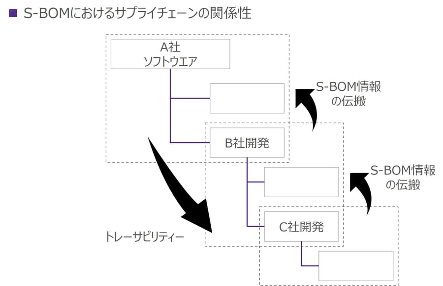 このような環境下では、サプライチェーン全体のS―BOM作成から脆弱性対策までを自動連携しながら可視化し、リアルタイムのトレーサビリティー確保とリードタイム短縮を図るデータ連携基盤が不可欠だ。
