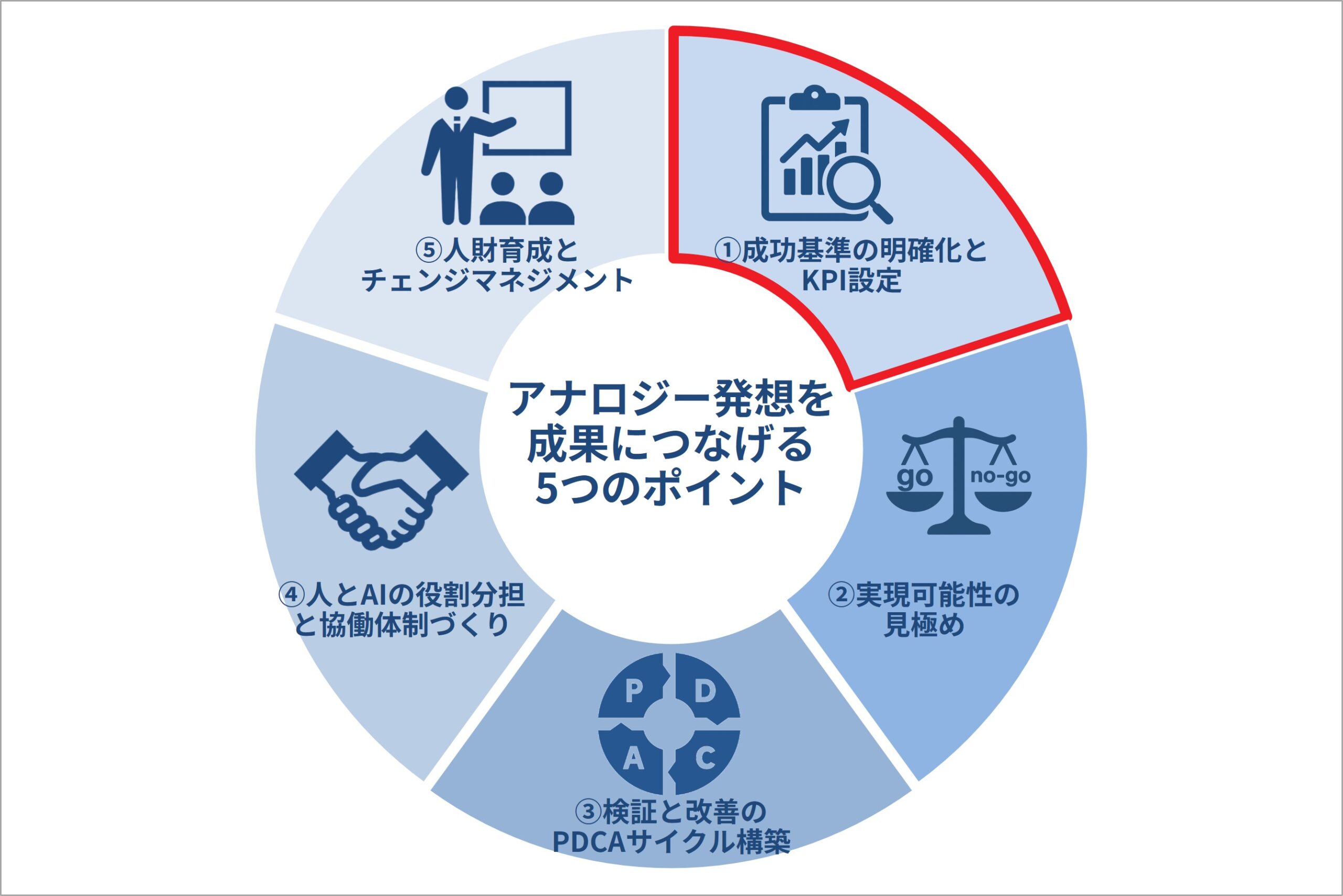 第4回では、生成AIの事例創出における鍵として「アナロジー思考」を取り上げた。確実に活用を実利へと進めるための5つのポイントを提示し、人とAIの役割分担と協働体制の整備、人財育成とチェンジマネジメントと並び、成功基準の明確化やKPIの設定が欠かせない点にふれた。