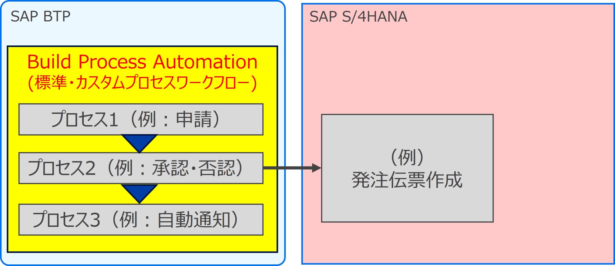 業務部門からは「うちのやり方に合わない」「今までの流れを崩したくない」といった理由で、標準機能の受け入れが困難になるケースがある。これに対してはSAP Build Process Automation(ワークフロー)を活用することで、標準プロセスの上に柔軟な承認フローや通知プロセスを追加できる。