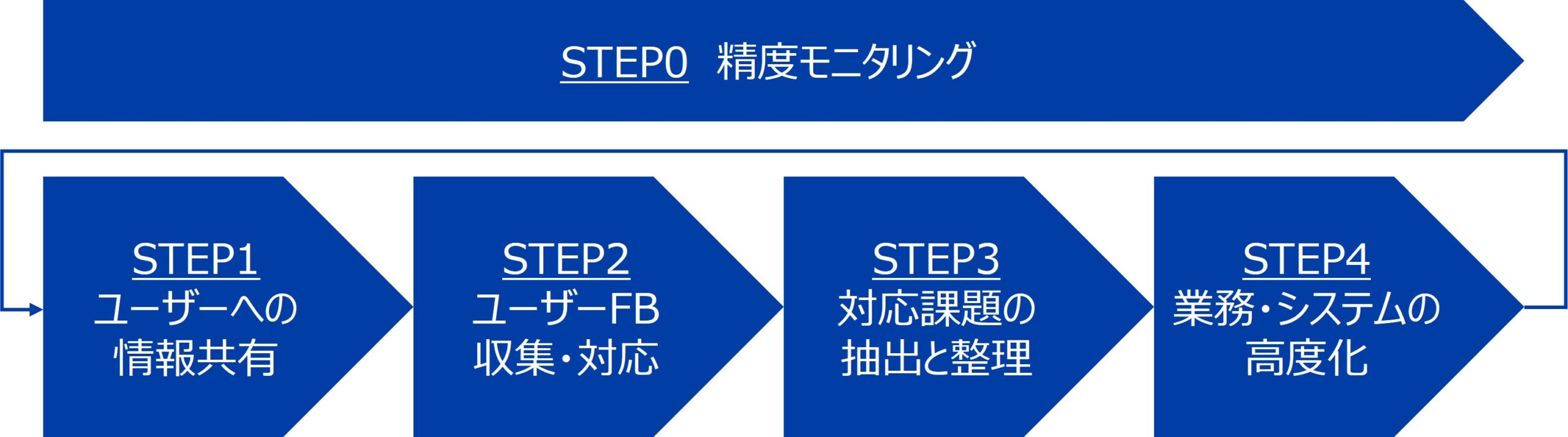 STEP2以降の手順についても、繰り返し対応することで、業務ユーザーに受け入れられやすい、よりよいAIシステムを築き上げていくことができる。