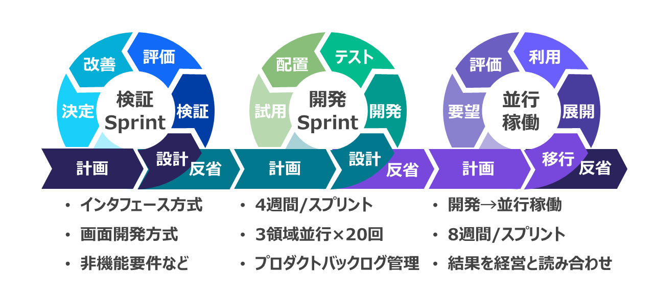 トライアル構築による実証:適合性の高いデザインパターンを基にトライアル環境を構築し、実際の運用を検証。