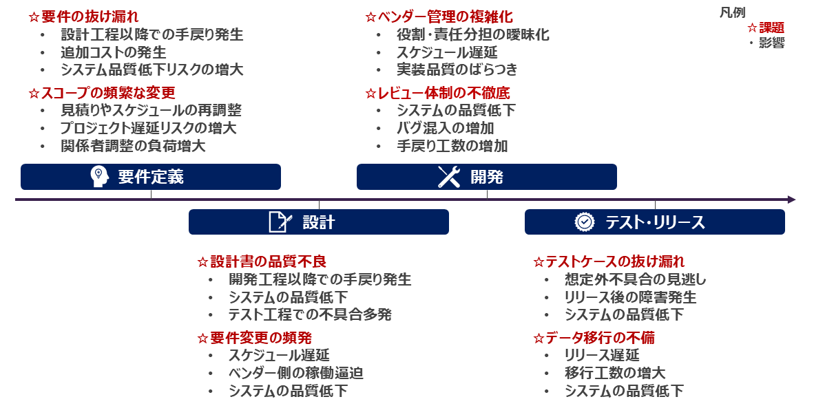 金融機関のシステム改革は、テーマの広範さに加え、複雑なシステム特性や多数の利害関係者が関与することから、品質不良やスケジュール遅延といったリスクが高まりやすい領域です。こうした高難度のプロジェクトを成功に導くには、リスクを先読みし、全体を統制するプロジェクト管理の専門家の存在が重要となります。