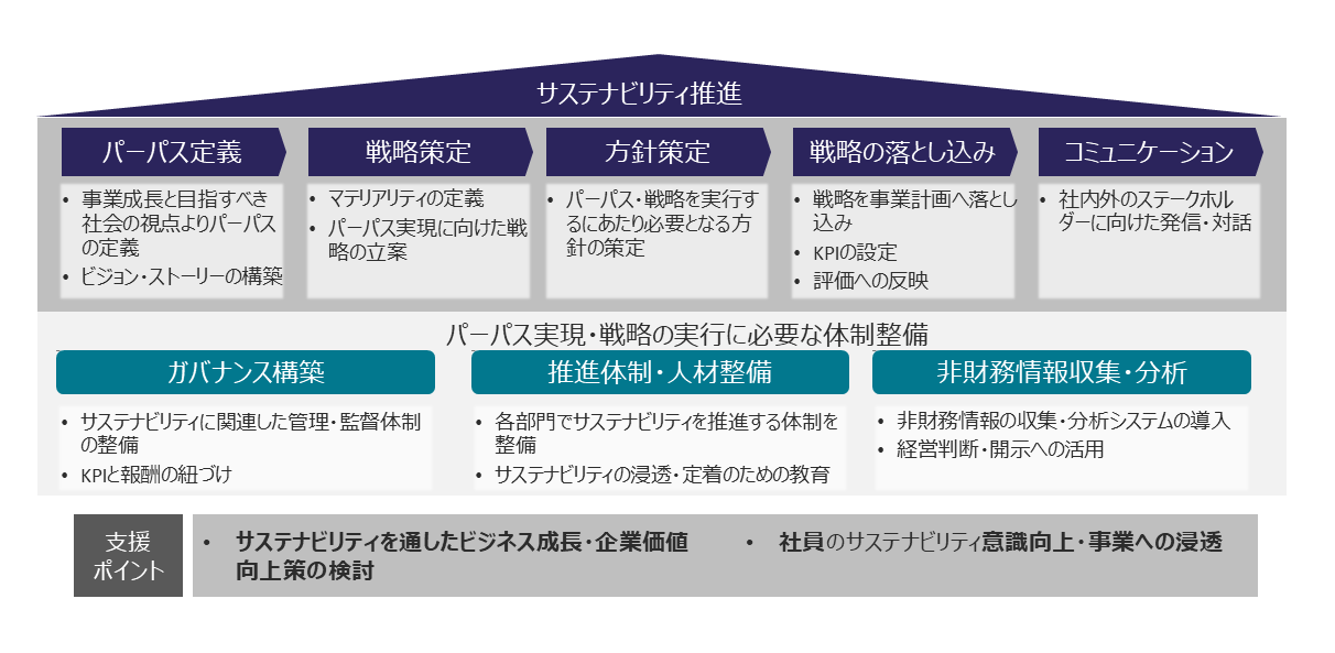 フォーティエンスは、グローバルに事業を展開する企業に向けて、全社・各拠点の双方に整合したサステナビリティ戦略の立案と実装設計を支援します。各国の制度・社会課題・市場要請の違いを踏まえ、全社共通のパーパスを軸にしたマテリアリティの定義、各拠点・各事業での目標設定、グループ全体での方針・KPIの整合を図ります。加えて、報酬制度への連動、社内教育・意識醸成、ガバナンス体制の整理といった、経営としての実行力を備えた仕組みの構築をサポート。グローバル企業に求められる「戦略の一貫性」と「現地適応の柔軟性」の両立を実現します。