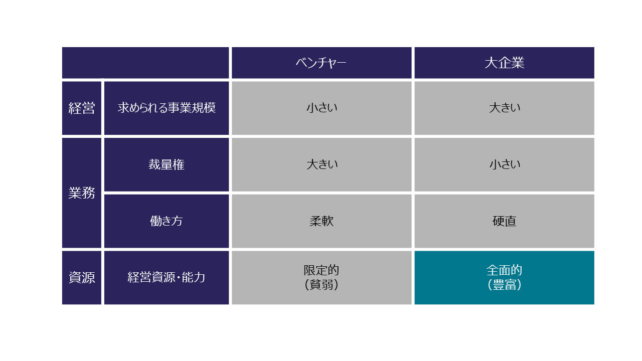 ・トップマネジメントが求める規模感に達しないケースが多く、大企業が新規事業を手掛ける意義を見出しにくい