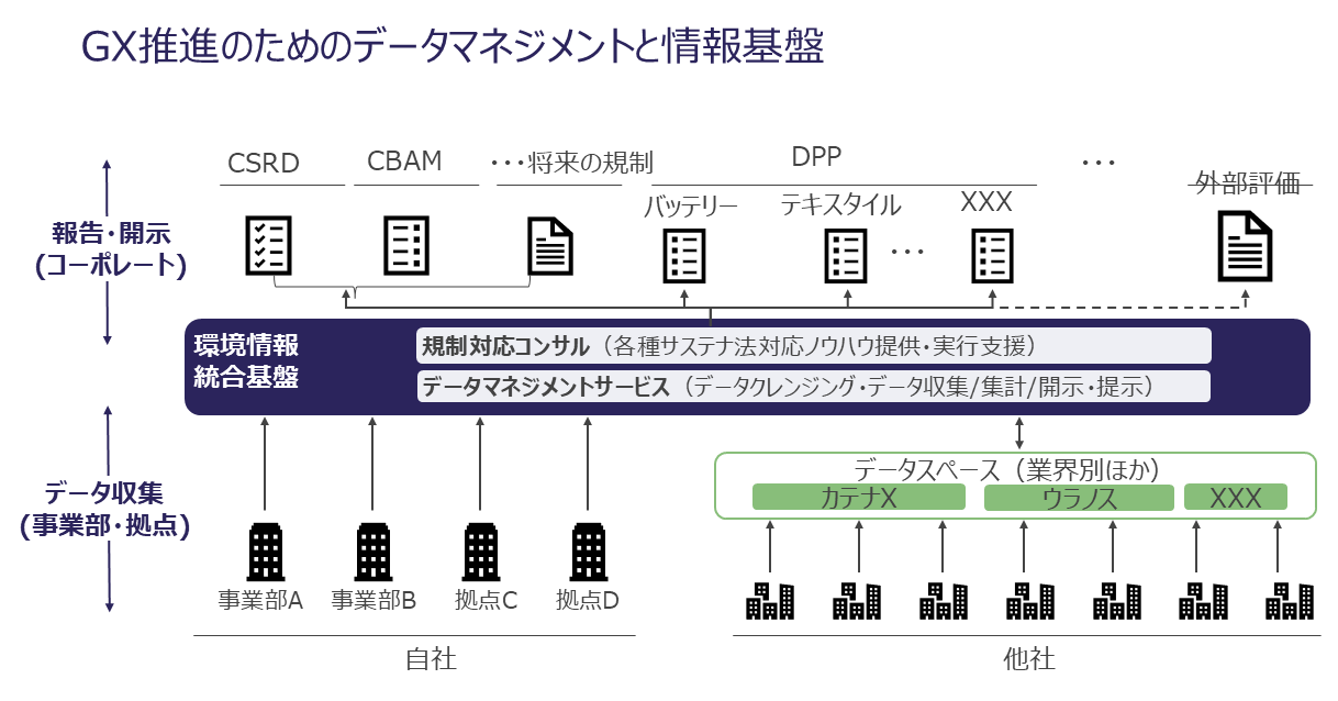 さらには、今後、日本(SSBJ)や欧州(CSRD)を中心に、環境情報を非財務情報として、これまでの財務情報と並び開示基準が厳格化されます。フォーティエンスでは、各企業のGX推進と外部への報告・開示の両者をにらんだデータマネジメント、情報基盤の構築を支援いたします。