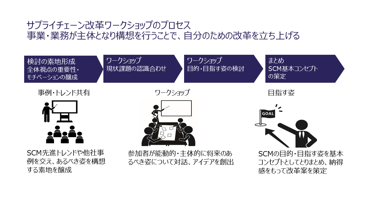 これまでのサプライチェーン改革は、技術的な課題を中心に、外部の専門家による分析や提言をもとに、トップダウンでプロセスに焦点を当てて推進されることが一般的でした。環境変化が緩やかで、解の見える課題においては、その手法が一定の効果を発揮してきました。