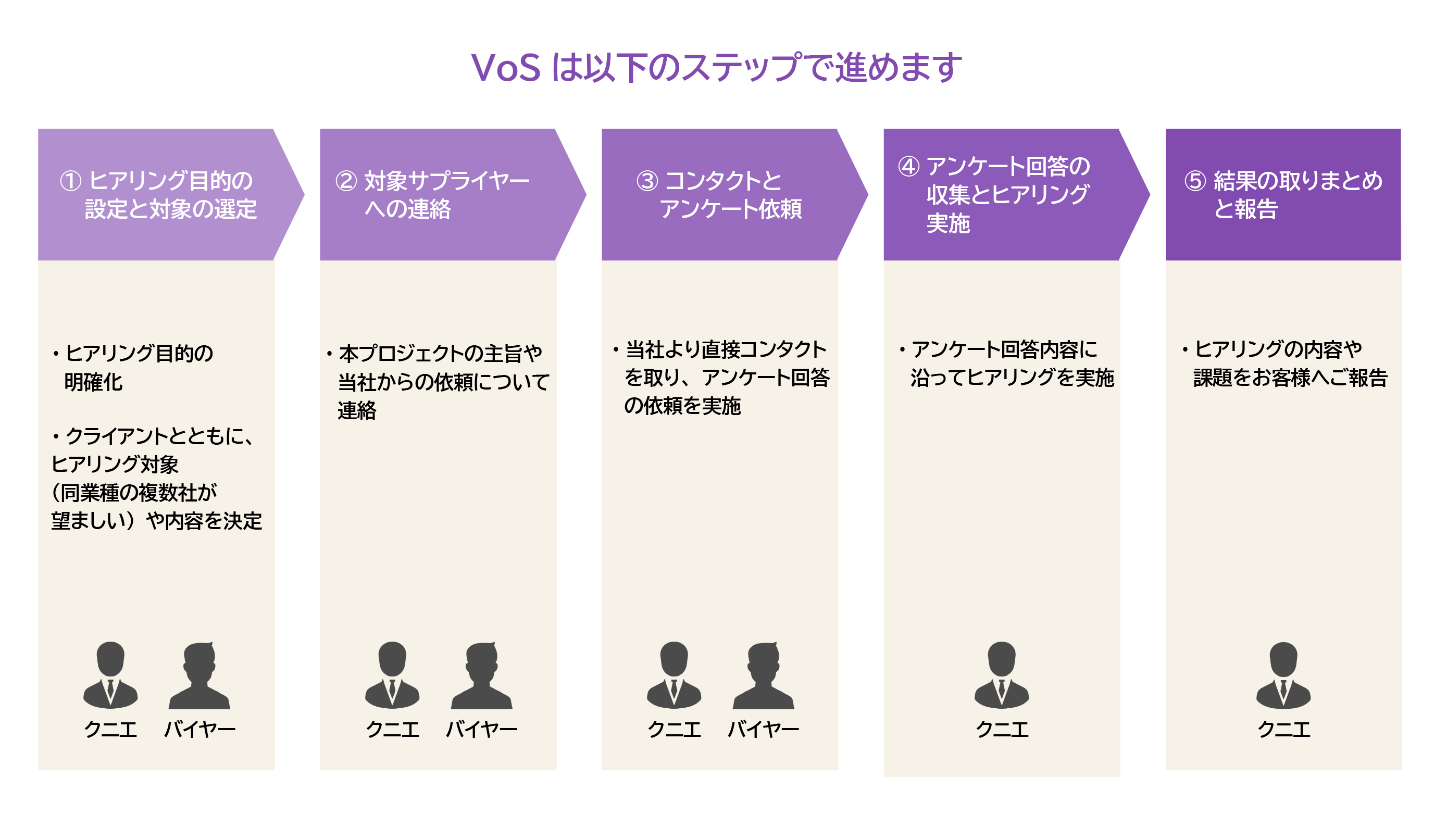 VoS:Voice of Supplierとは、サプライヤーの本音を聞き出すことです。