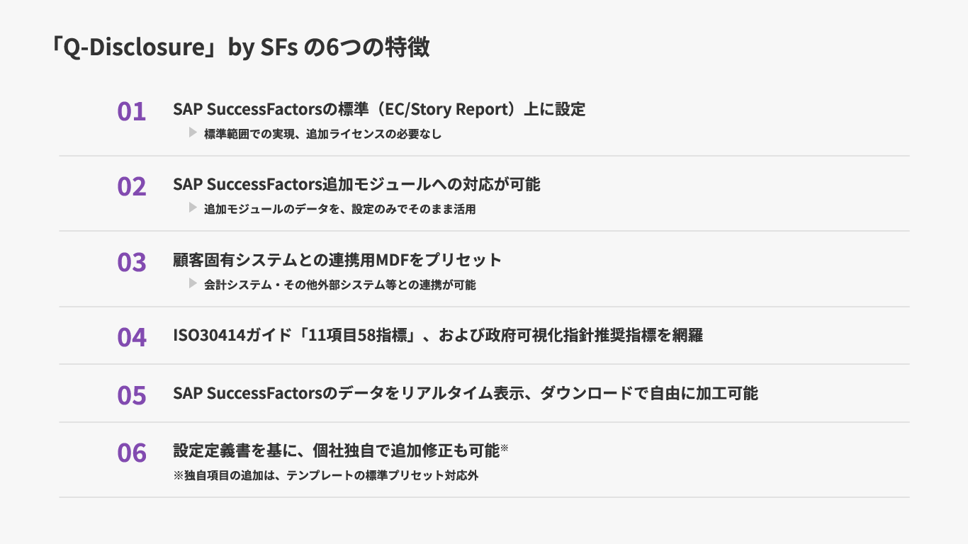 図2:「Q-Disclosure」by SFs の6つの特徴