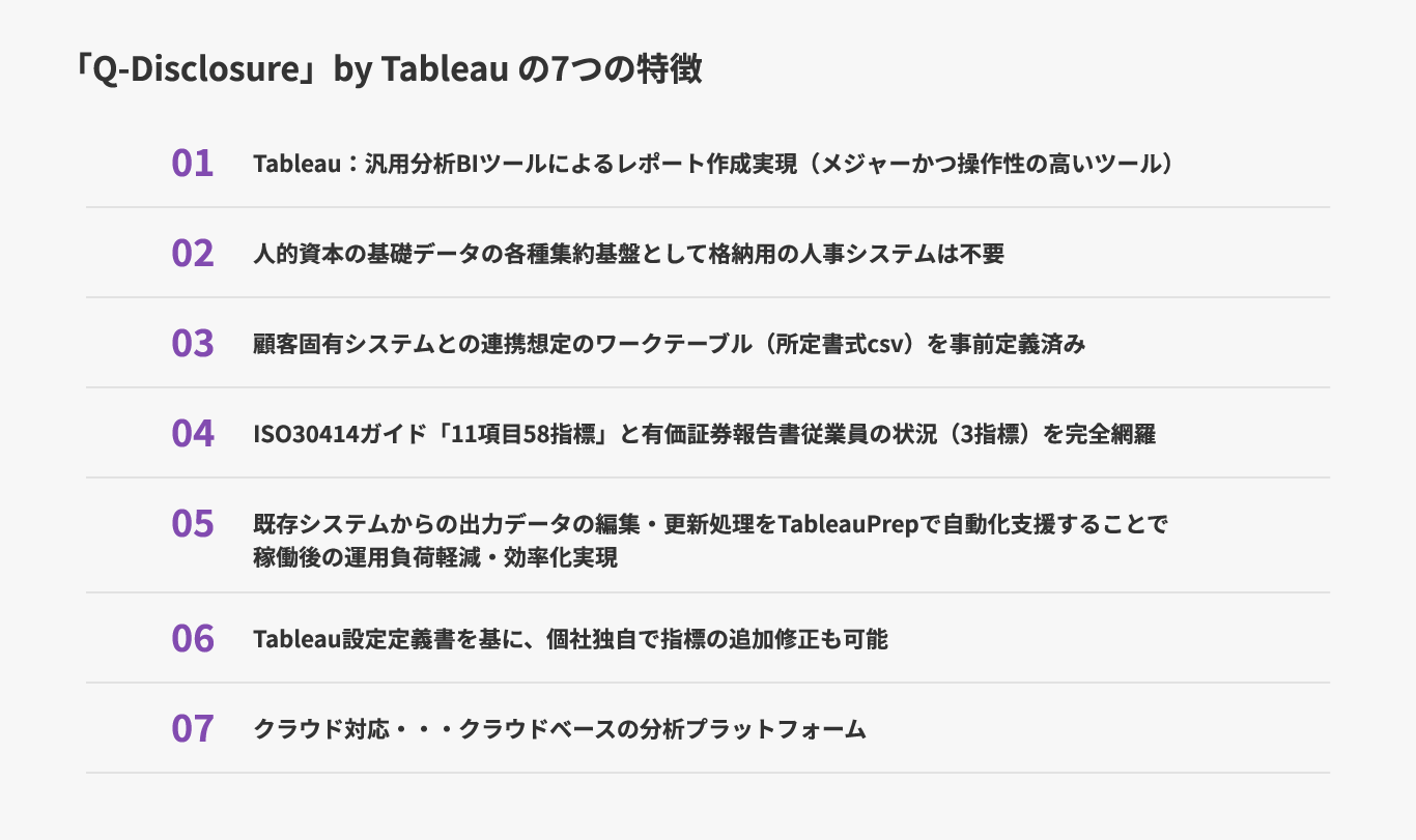 図2:「Q-Disclosure」by Tableauの7つの特徴