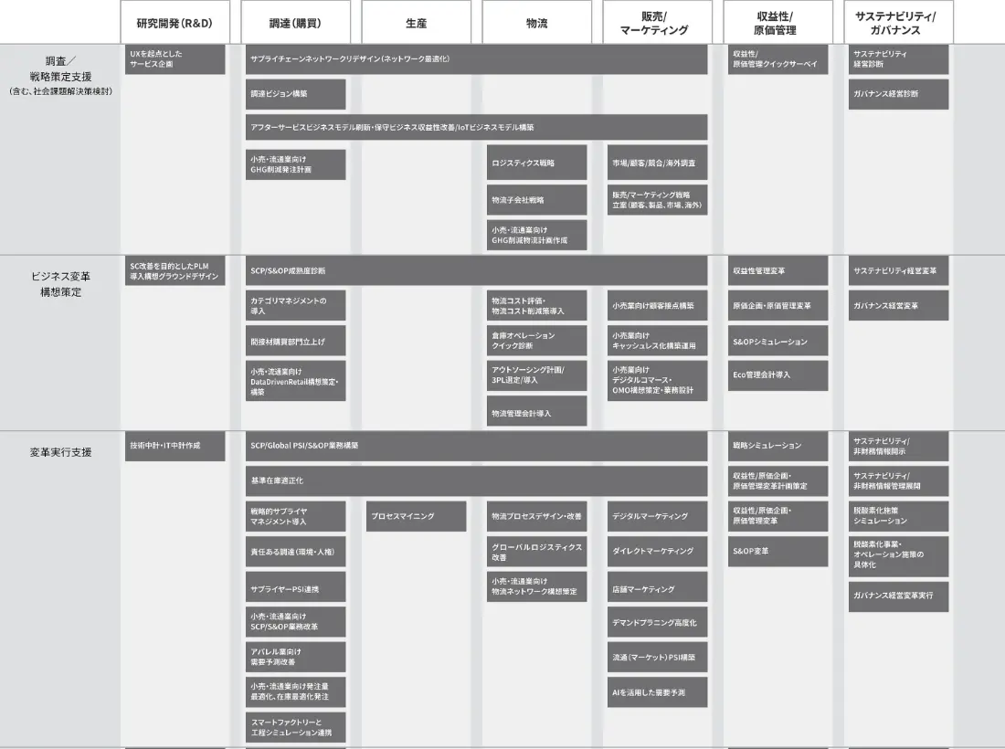 変化する市場や社会課題に非常に早いサイクルで、業務/ITシステムの見直しや改善して運営できる組織の実現を念頭に、企業が直面する個々の課題に対して、その解決を支援しています。